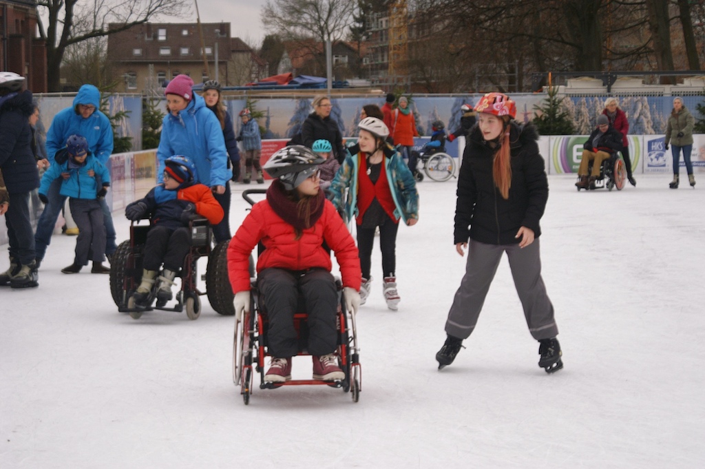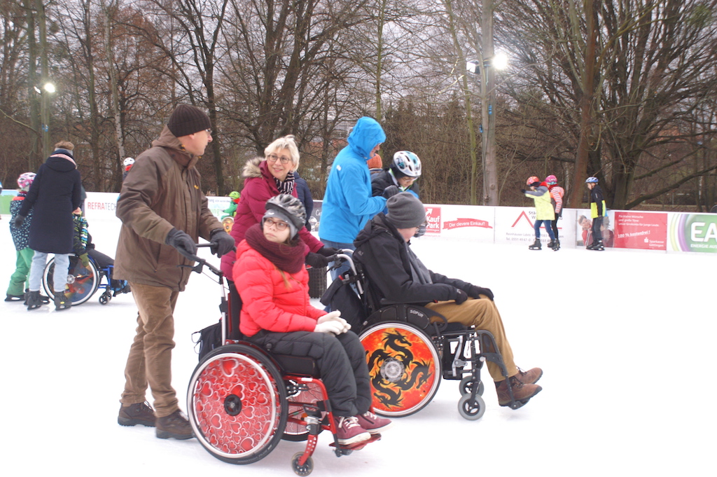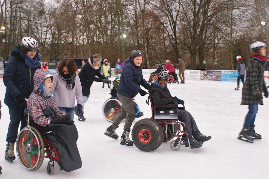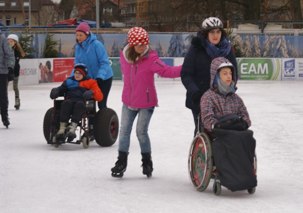 Unsere ganze Schule war am 16.01.2019 zum Schlittschuhlaufen. Alle hatten Spaß, besonders die Kleineren. Die Rollifahrer haben wir geschoben und für alle gab es Hilfsmittel damit jeder aufs Eis konnte. Diese hatten wir vom Sanitätshaus Goetheallee. Obwohl wir alle wenig Erfahrung auf dem Eis haben, sind wir nicht so oft hingefallen.