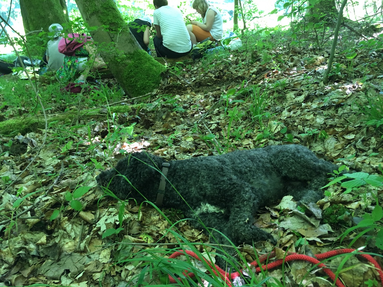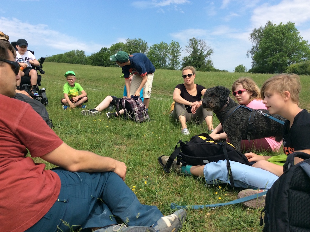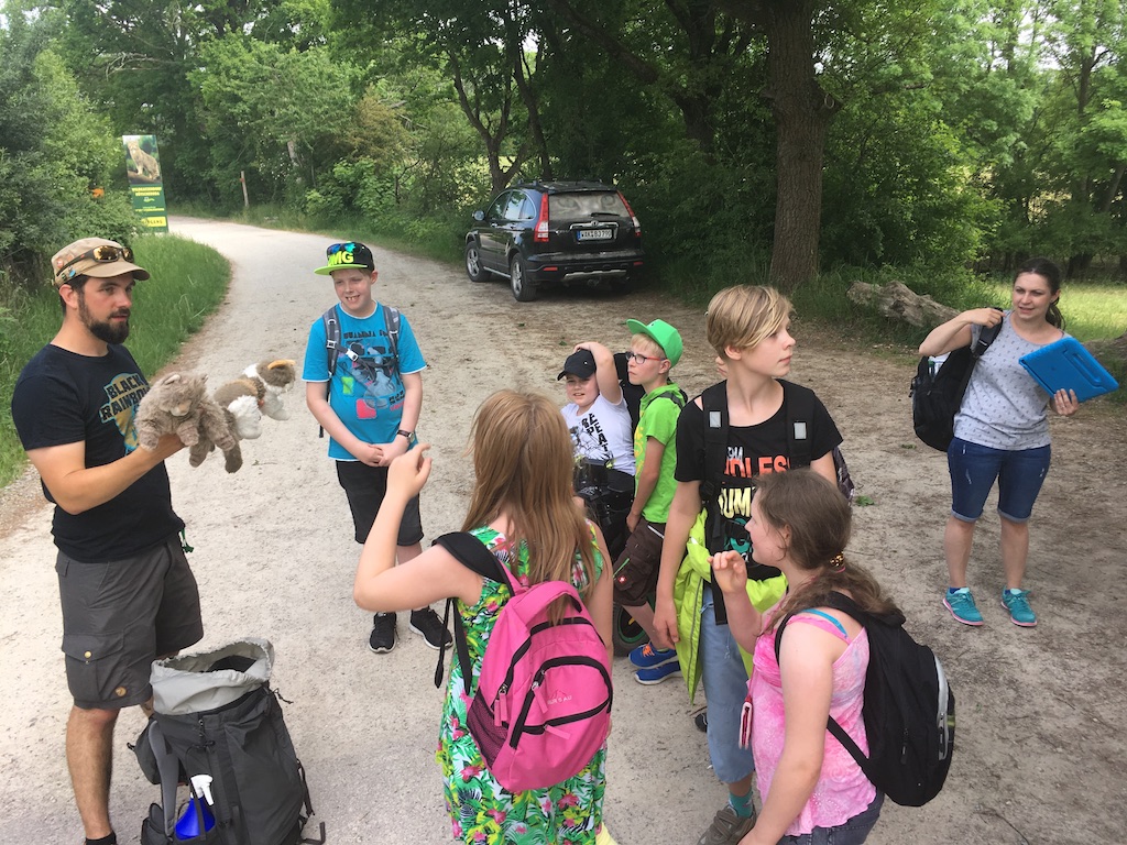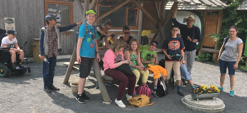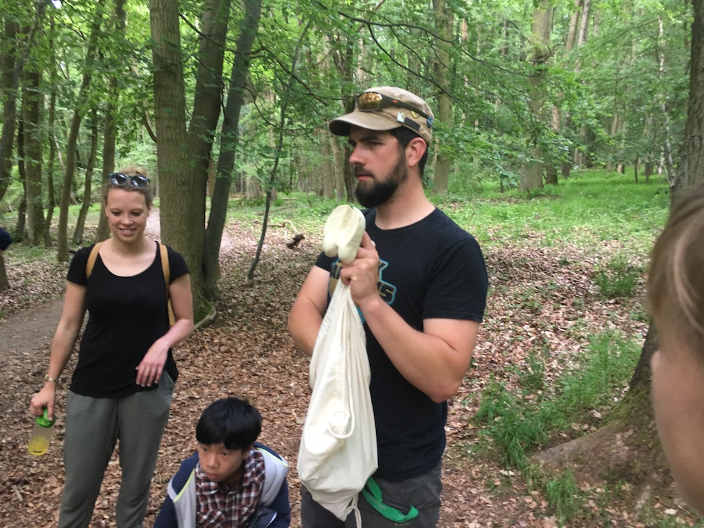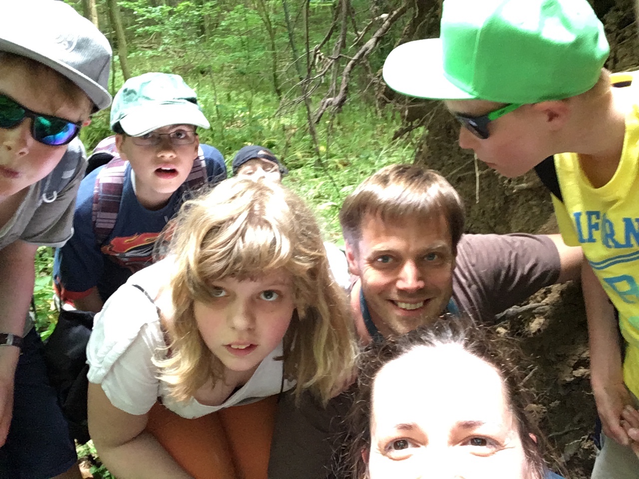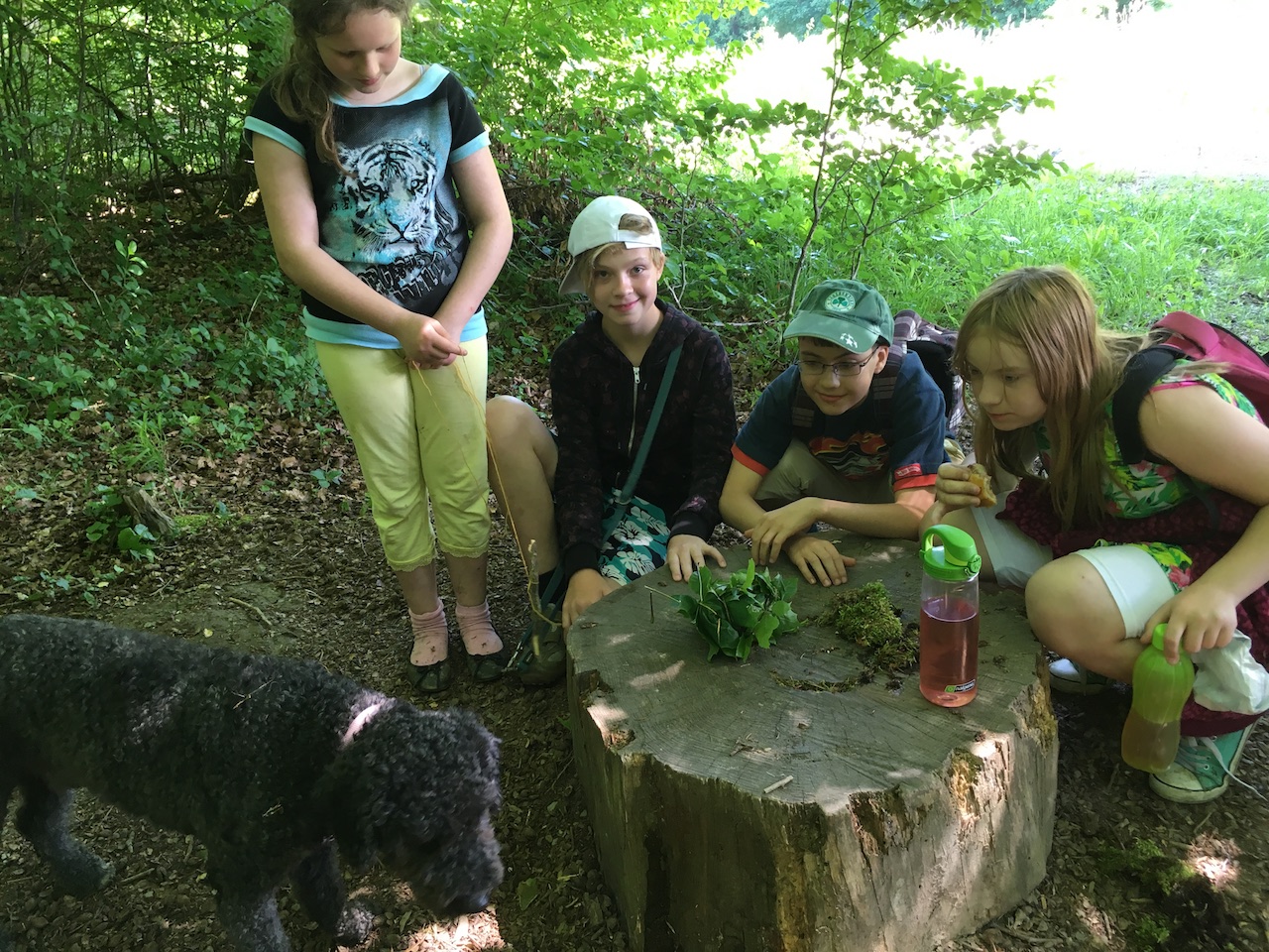 Donnerstag war unser Waldtag. Nach dem Frühstück haben wir eine  Schnitzeljagd gemacht. Gruppe 1 mit  Nick , Stavros, Aric, Fiona, Oskar, Meffi und Herr Beckermann  haben eine Spur gelegt und versteckten sich unter einem umgefallenen Baum. Im Wald haben Till, Herr Beckermann und Oskar viel Spas gehabt. Im Wald haben wir alle Mittag gegessen. Meffi war auch müde von der Schitzeljagd und musste sich ausruhen. Oskars E-Rolli  hat sich Im Matsch fest gefahren. Leonies Socken sind dreckig. Aric,Oskar, und Frau Meister ziehen den  E-Rolli aus dem Wald.