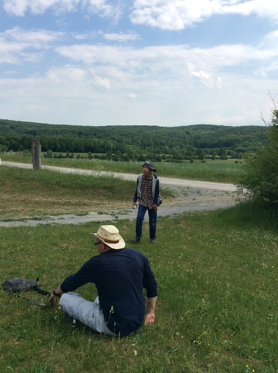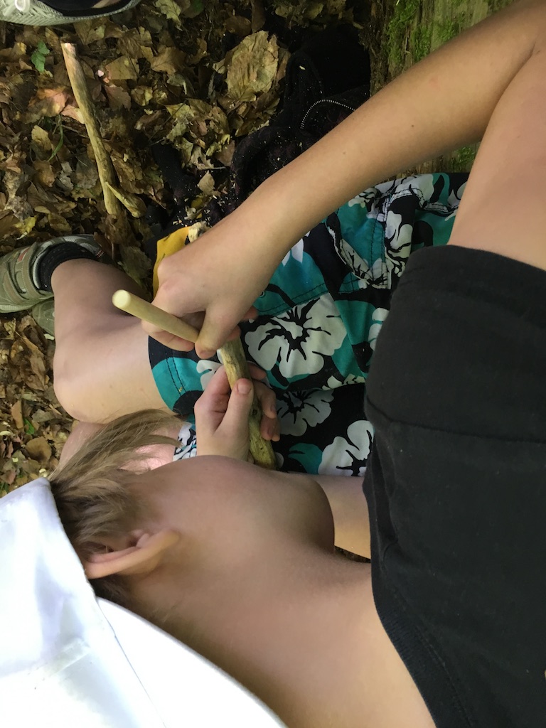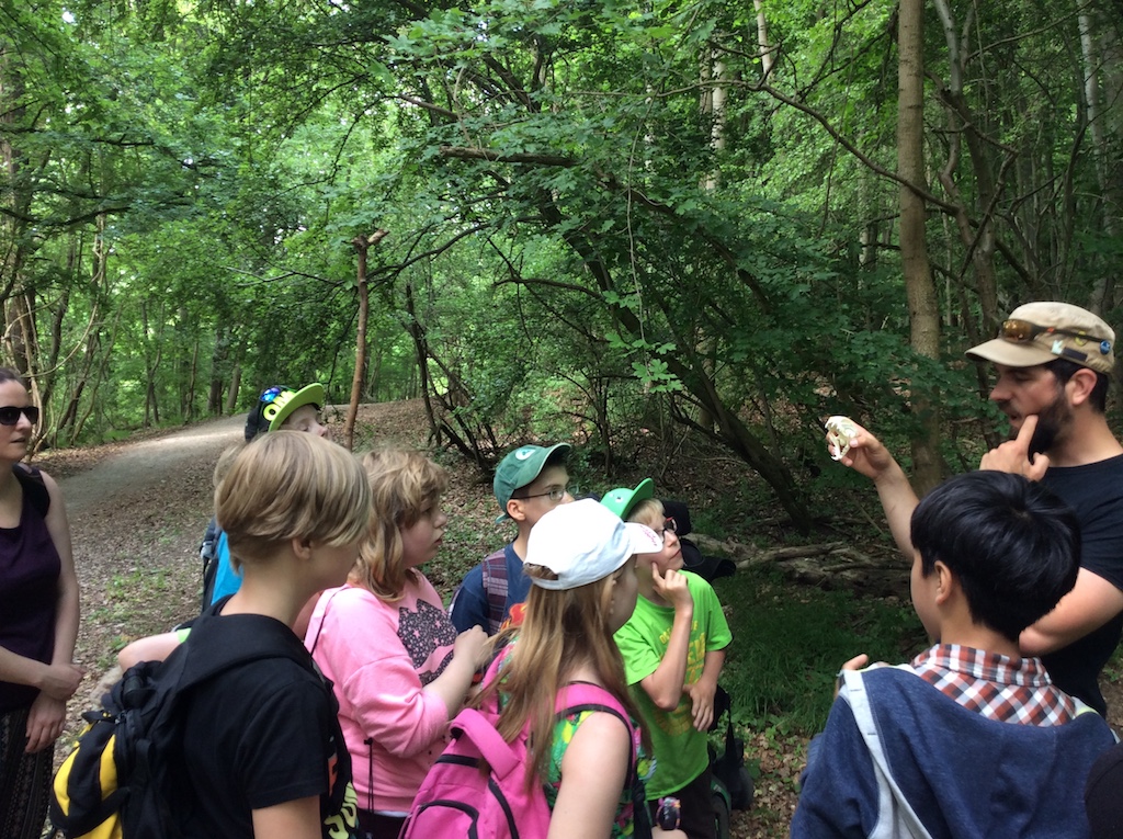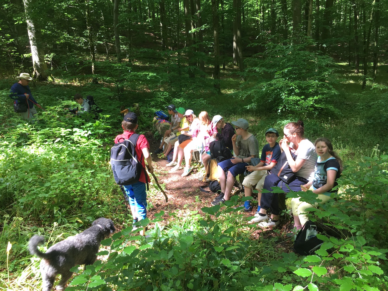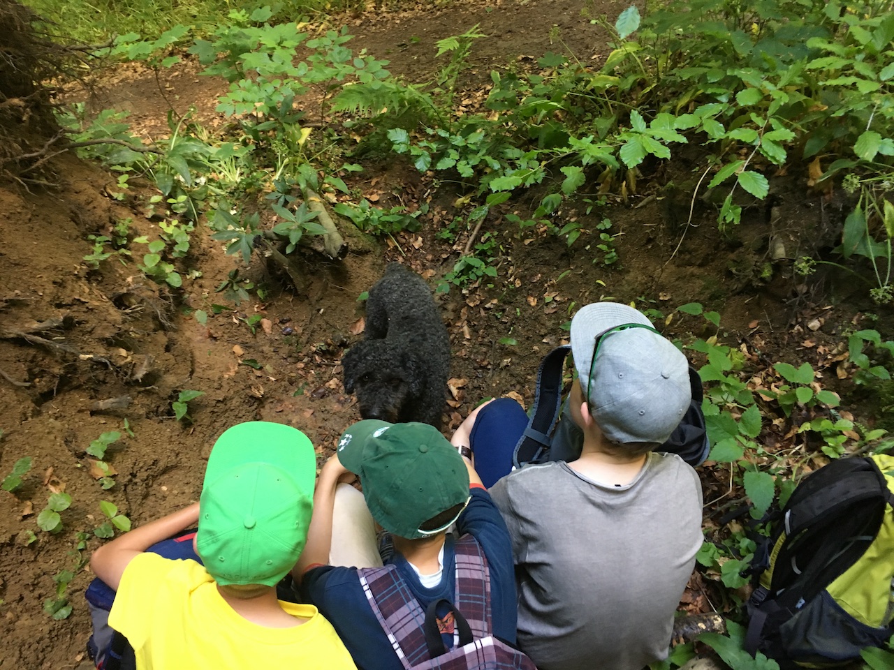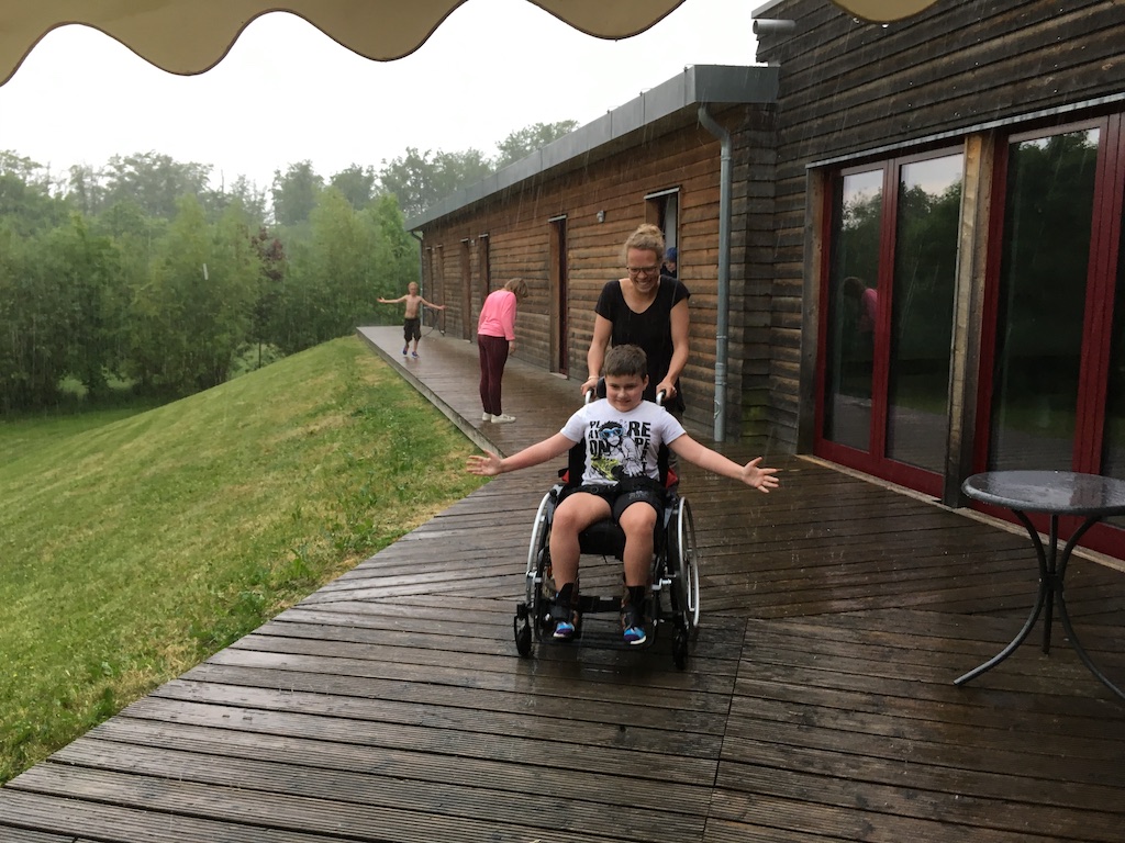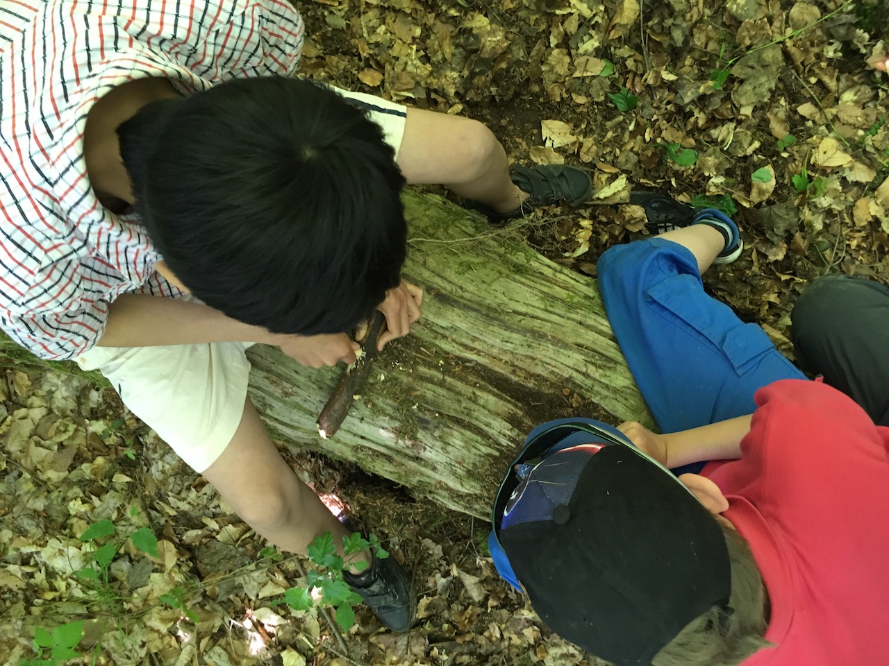 Donnerstag war unser Waldtag. Nach dem Frühstück haben wir eine  Schnitzeljagd gemacht. Gruppe 1 mit  Nick , Stavros, Aric, Fiona, Oskar, Meffi und Herr Beckermann  haben eine Spur gelegt und versteckten sich unter einem umgefallenen Baum. Im Wald haben Till, Herr Beckermann und Oskar viel Spas gehabt. Im Wald haben wir alle Mittag gegessen. Meffi war auch müde von der Schitzeljagd und musste sich ausruhen. Oskars E-Rolli  hat sich Im Matsch fest gefahren. Leonies Socken sind dreckig. Aric,Oskar, und Frau Meister ziehen den  E-Rolli aus dem Wald.