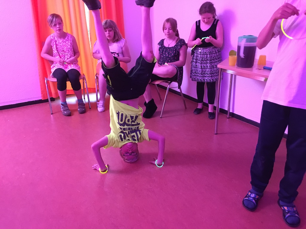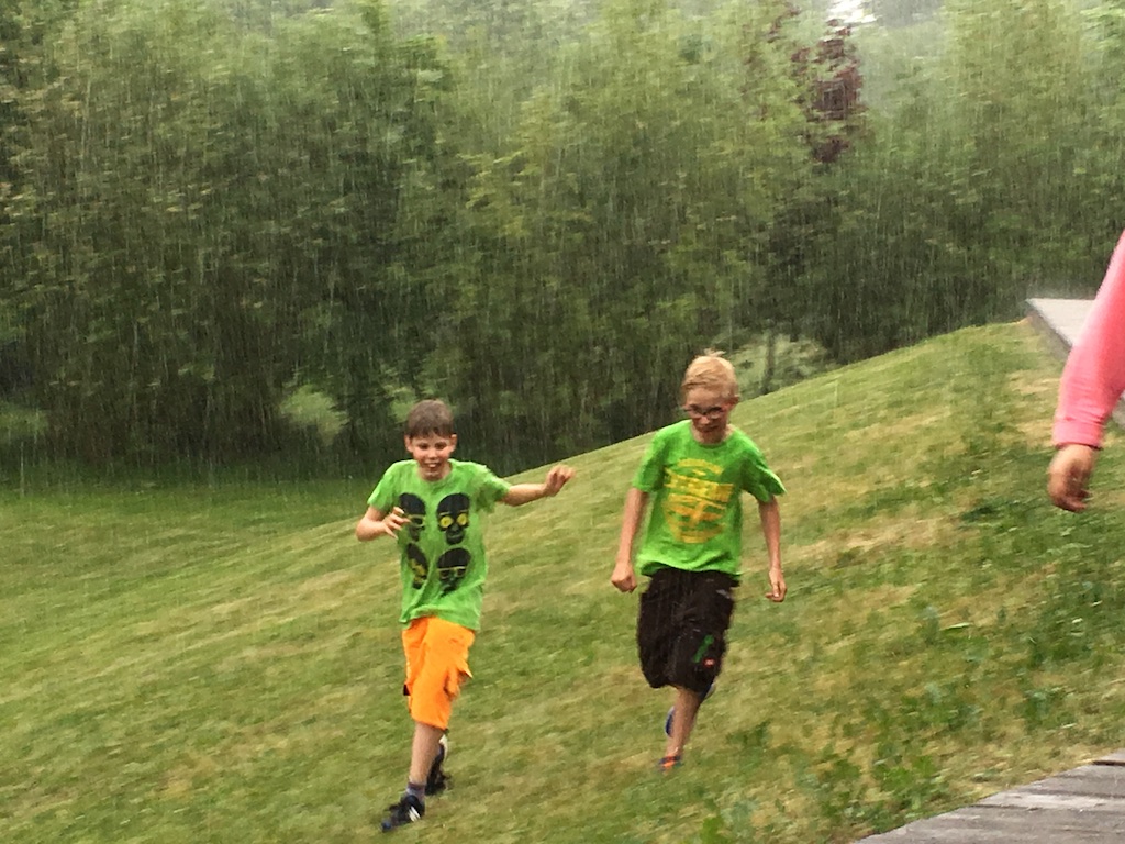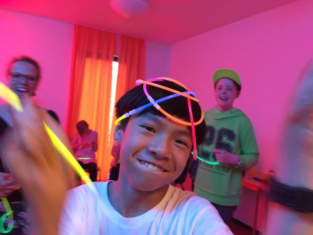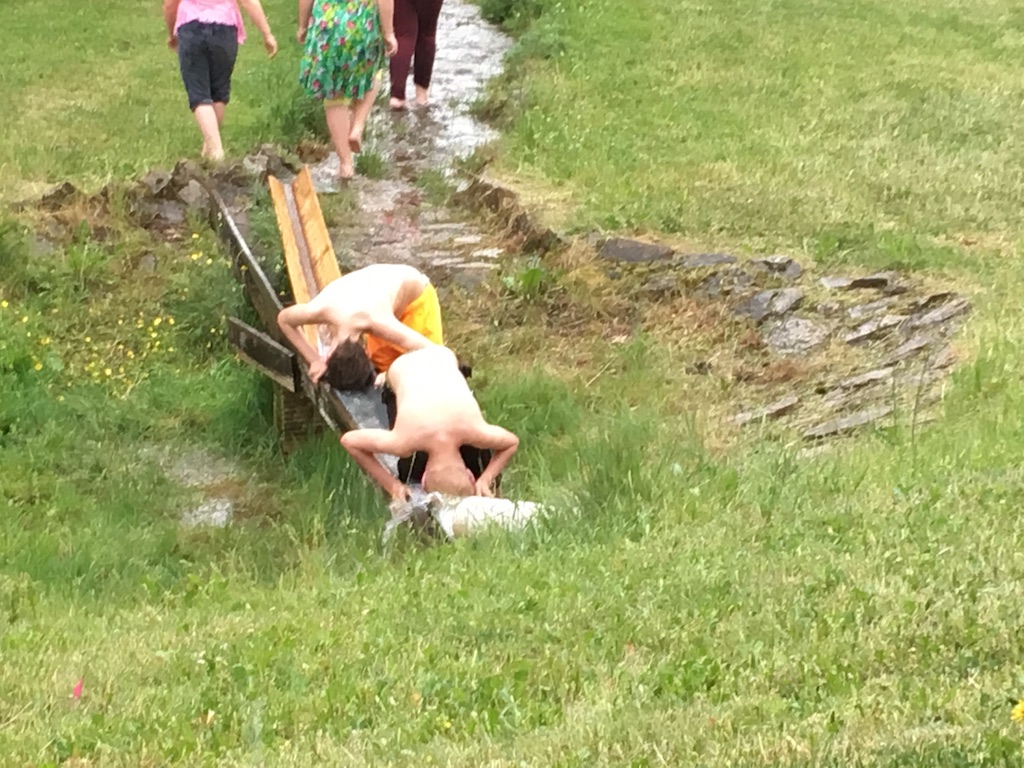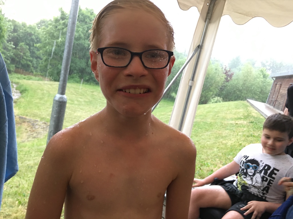 Morgens sind wir von Musik aufgewacht. Naja nicht alle...Wir haben uns angezogen. Dann sind wir zum Frühstück gegangen und haben uns Lunchpakete gemacht. Das war gar nicht so einfach weil da hunderte andere Kinder waren. Wir sind in der Disko. Wir waren draussen im Wald. Meffie hat gegessen. Wir machen einen Regentanz und sind durch den Regen gelaufen. Aric und Adrian spielen im Matsch. Wir machen alle Bogenschiessen. Oskar hat mit Frau Naumann Frühstück gegessen. Adrian guckt in die Kamera. Lilly guckt auch in die Kamera. Wir sind im Katzenpark. Es war toll. Dienstag war toll.
