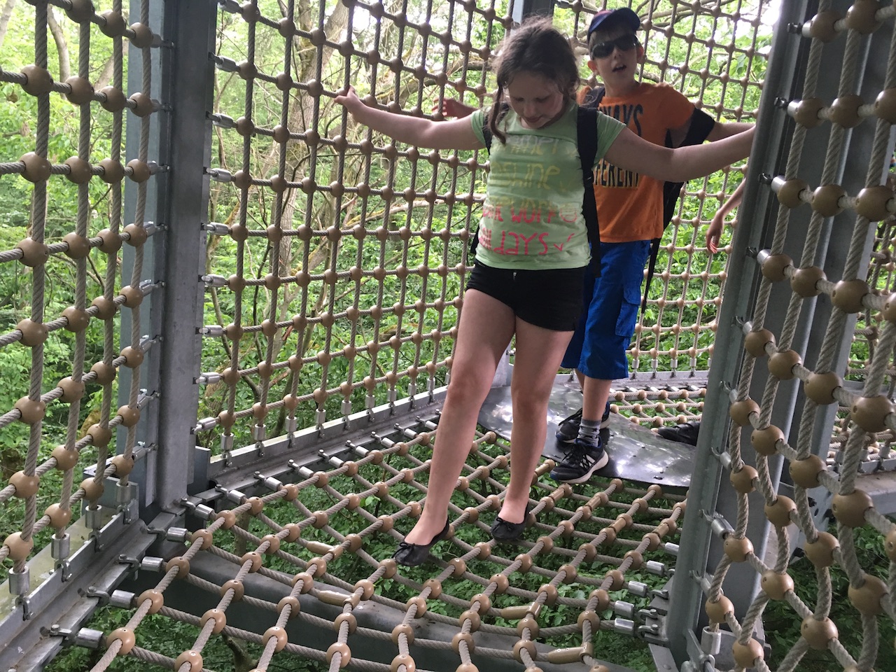 Wir waren am Mittwoch beim Baumkronenpfad. Uns wurde von Vögeln sehr schön erzählt. Es war ziemlich hoch und es wurde immer höher und länger. Dort im Wald gab es schöne Spielplätze.🕶👟😑👍🏿🌲🌳🐿☀️📸🇩🇪 Auf dem Baumkronpfad da gab es Spielgeräte und es war schön. Nach den Baumkronenpfad waren wir einkaufen.Danach haben wir gespielt auf den Gelände  der Jugendherberge. Dann haben wir Abendbrot gegessen und das war sehr lecker. Nach dem Essen haben gespielt und haben die Geschichte von Ronja Räubertochter weiter gehört. Dann haben wir geduscht und sind müde ins Bett gefallen.