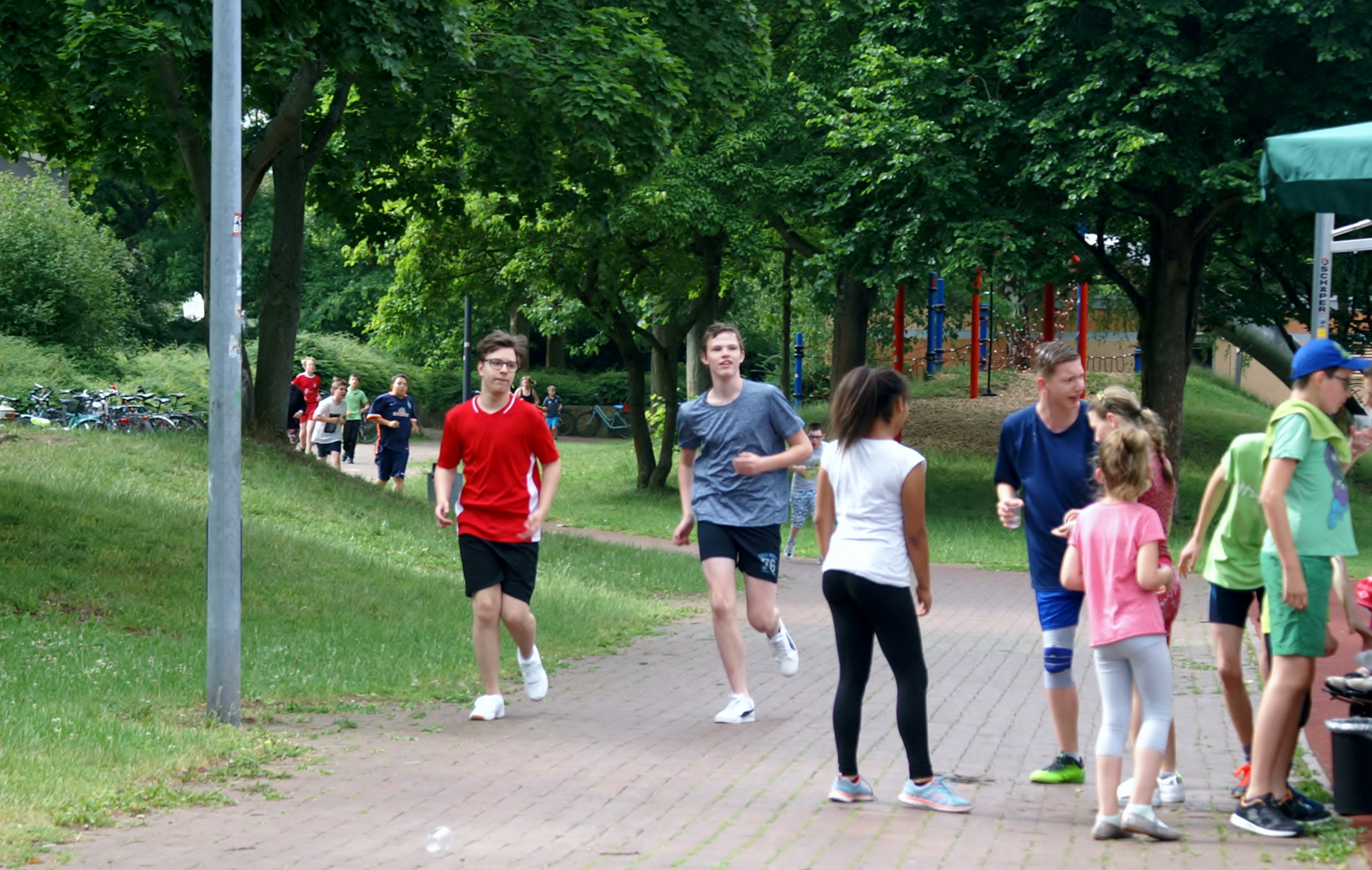 Zum Schuljahresabschluss führten wir das traditionelle Lauffest durch. Alle Mitarbeiterinnen und Mitarbeiter waren von der Ausdauer und dem Durchhaltevermögen vieler Schülerinnen und Schüler sehr beeindruckt. Nach 1 ½ Stunden haben wir auf dem Abschluss gedrungen, um bei den warmen Temperaturen keine Kreislaufprobleme aufkommen zu lassen.