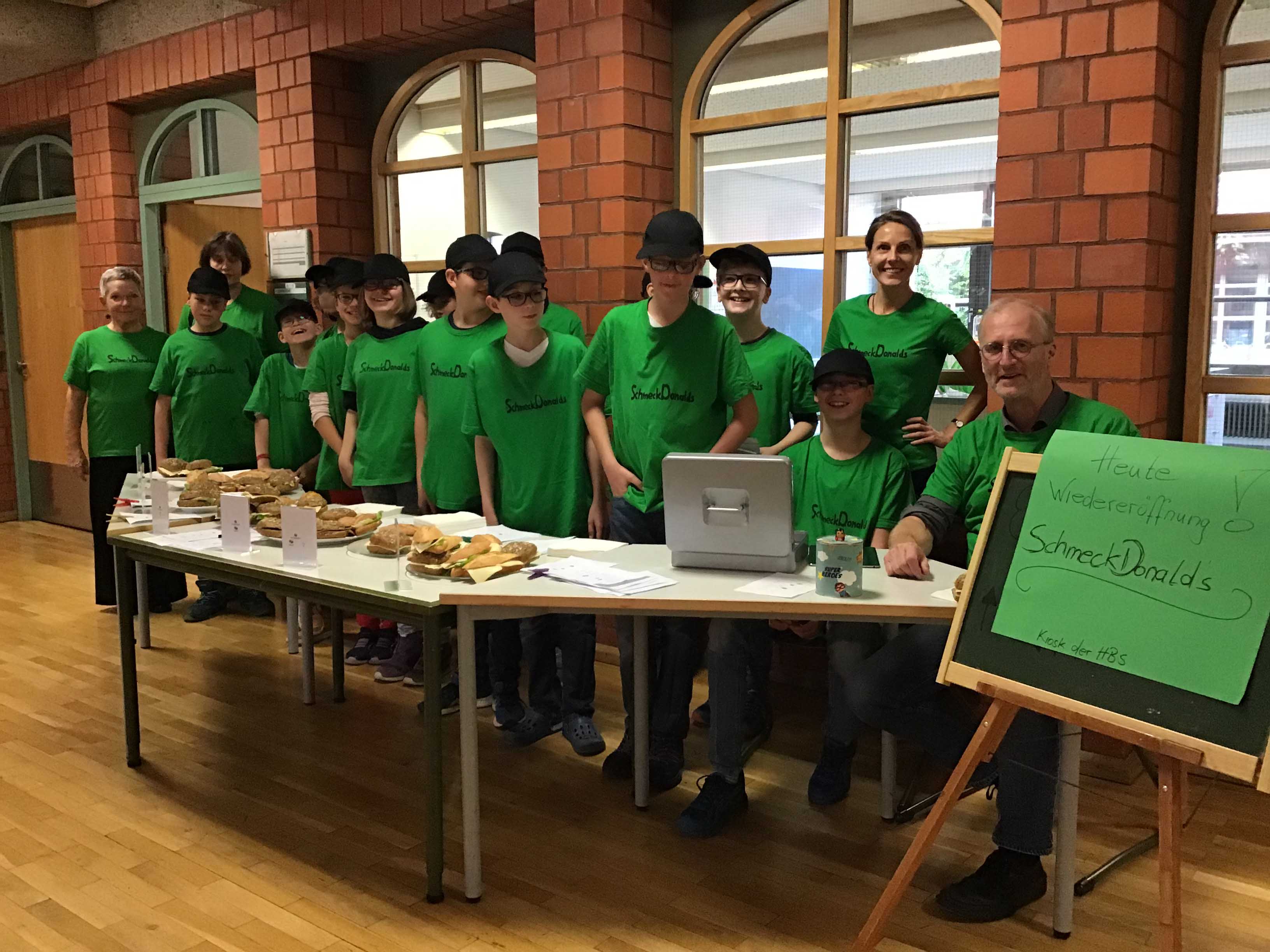 Unser Kiosk ist wieder geöffnet! Die Klassen 6a und 6b haben den "Powerklassen-Kiosk" übernommen. Der Kiosk heißt jetzt "SchmeckDonalds".
