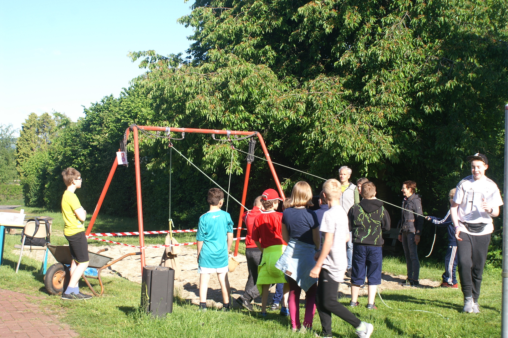 Kurz vor Schuljahresende veranstalteten wir ein Sport- und Spielefest für die ganze Schule. Mit Laufzetteln hatten die Schülerinnen und Schüler in Gruppen Stationen zu bewältigen, bei denen es hauptsächlich auf Kondition und Teamwork ankam.