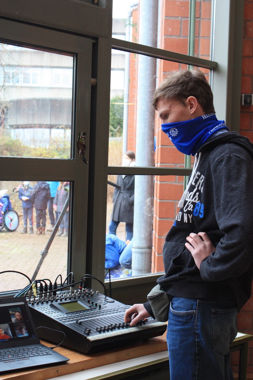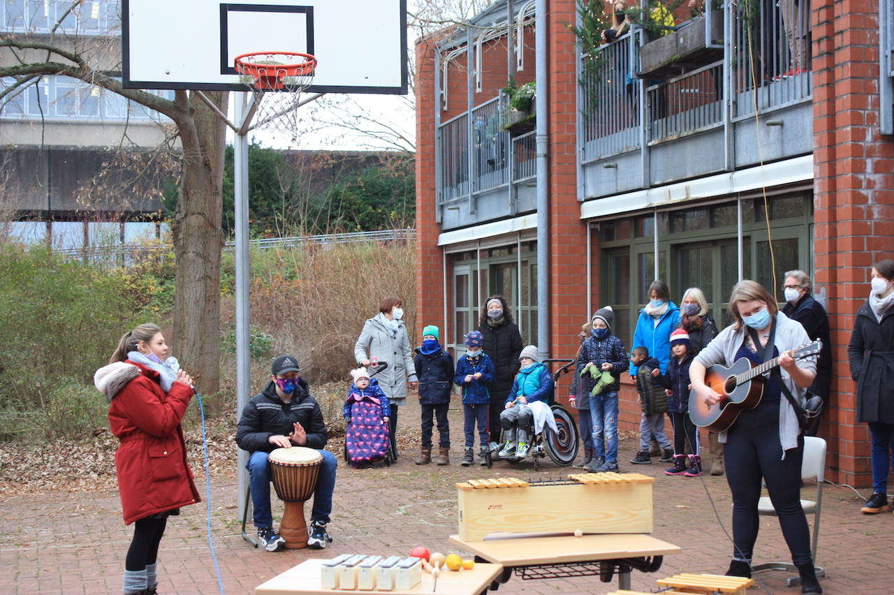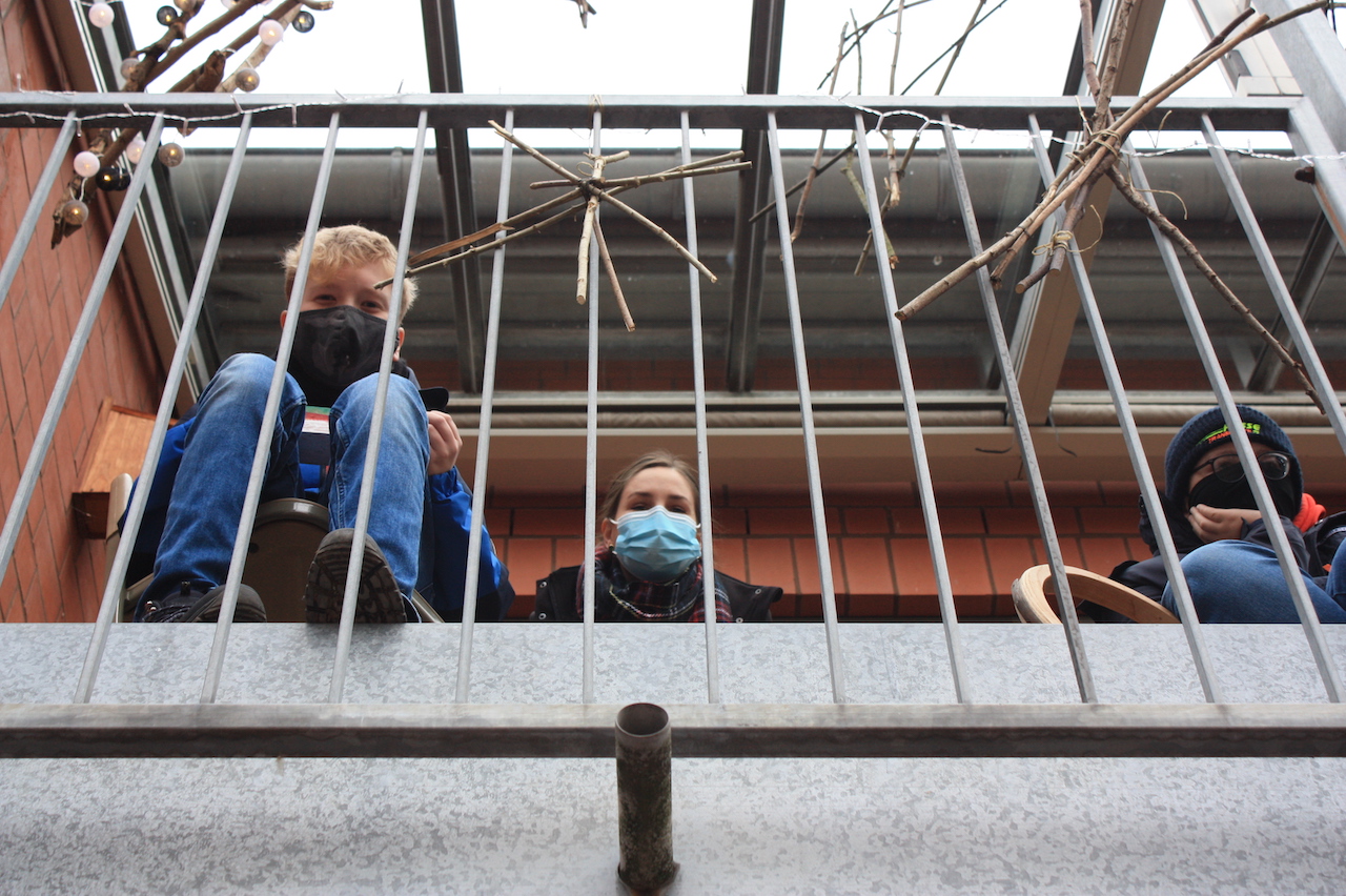 Deswegen hat die Schulgemeinschaft gemeinsam Weihnachten gefeiert, auch, wenn die Bedingungen in diesem Jahr ganz anders waren. Die musikalischen Beiträge der Schüler:innen und Mitarbeiter:innen haben alle Zuhörenden auf den Balkonen, dem Schulhof und auch im Livestream Weihnachten in die Herzen gebracht.