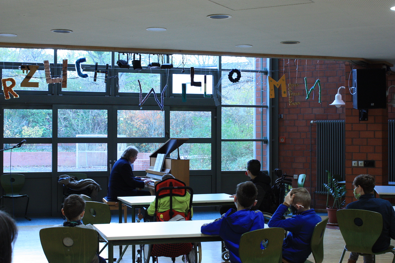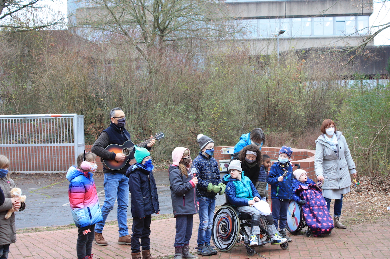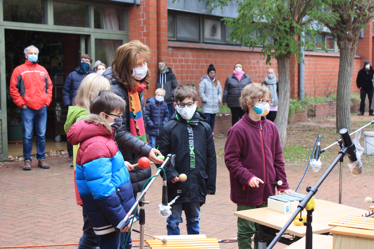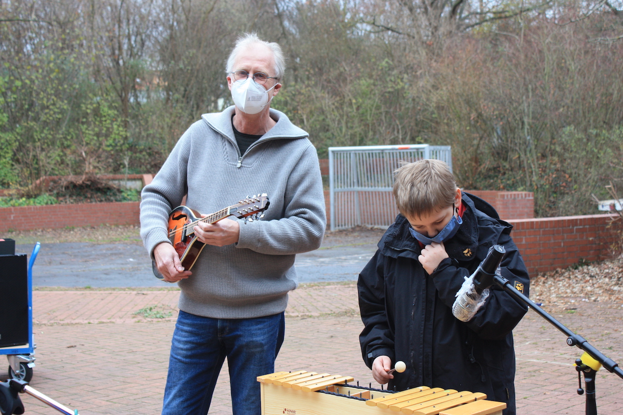 Deswegen hat die Schulgemeinschaft gemeinsam Weihnachten gefeiert, auch, wenn die Bedingungen in diesem Jahr ganz anders waren. Die musikalischen Beiträge der Schüler:innen und Mitarbeiter:innen haben alle Zuhörenden auf den Balkonen, dem Schulhof und auch im Livestream Weihnachten in die Herzen gebracht.