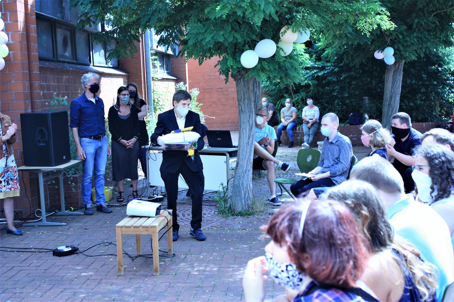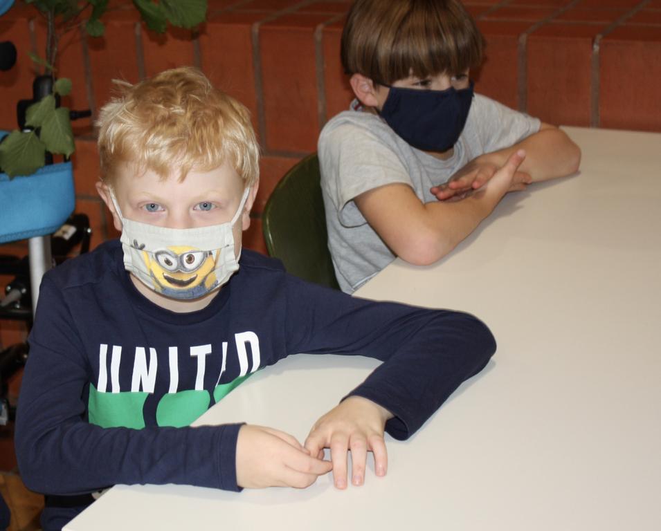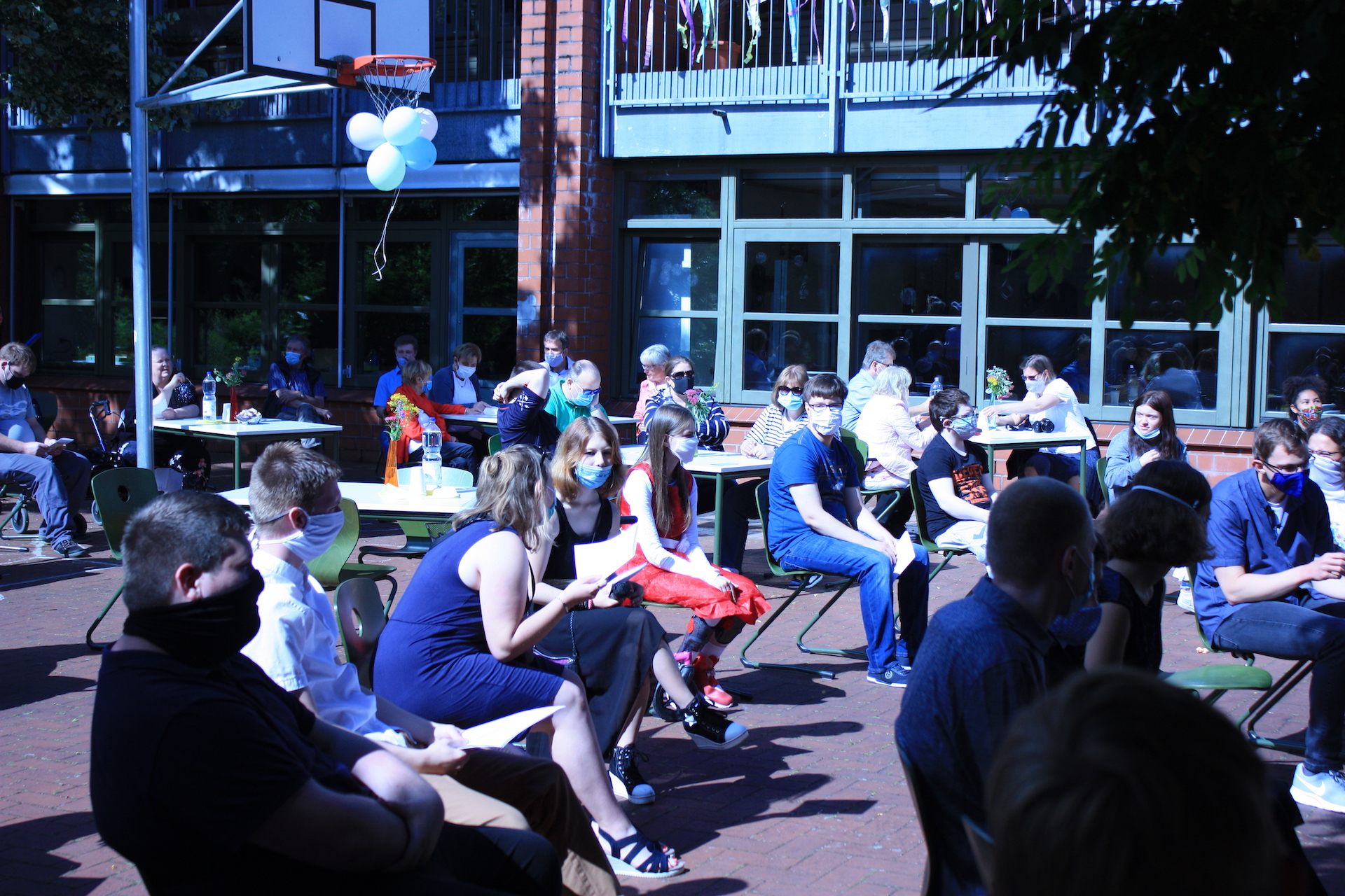 Es war das erste (und hoffentlich zugleich letzte) Mal, dass die neuen Kinder eingeschult wurden und nicht von der ganzen Schulgemeinschaft begrüßt werden konnten. Das Empfangskomitee bestand aus den drei Klassen der Eingangsstufe und der Klasse 5. Es hatte sehr kreative Ideen: Die Klasse 5 bot blumige Grüße auf der Leinwand an, die ESC zeigte eine Szene des Löwen in der Schule und die ESA inszenierte den „Buchstabenbaum“. „Lubo aus dem All“, der Kindern in schwierigen sozialen Situationen helfen kann, stellte sich persönlich vor, sein Lied wurde vom Unterstufenchor gestisch begleitet.